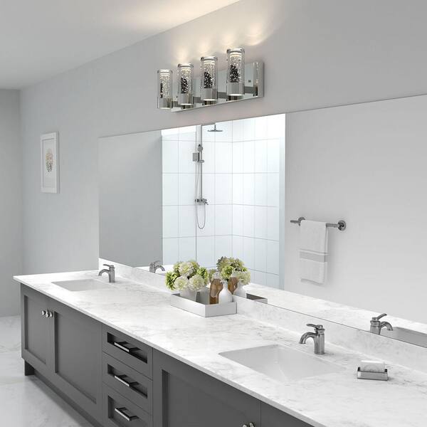 Mirrea 48in led vanity light for bathroom lighting dimmable 46w brushed nickel finished stainless steel and frosted acrylic. Led vanity lights, farmhouse vanity lights, crystal vanity lights and more can not only light up the space but add a touch of elegance and style that can perfectly compliment your vanity, colour scheme and more. Sloping support arms and clear, seeded glass shades lend a whimsical feel to this elegant fixture. Shop bathroom vanity lights and find a variety of bathroom light fixtures to fit your style. Vanity (2) vanity light (1181) vanity lights (14) availability options. Can be mounted up or down acrylic clear seeded shade shade included includes 2 x 10 watt integrated led module (s) lumens: James allan vermillion 3 light 21 wide led bathroom vanity light with outer clear glass and heavy sand blast inner glass. The temperature of the daylight setting is 5000k, and the warm setting is 2700k. Relying on the soft, diffused effect of the vanity will just make the rest of the room appear dim. Chende led vanity mirror lights, 11.53ft hollywood make up light for vanity stick on, 10 large daylight dimmable bulbs with ac adapter, for makeup vanity table & bathroom mirror, mirror not included. Brink 36 led bathroom vanity & wall light 3000k, black by wac lighting (2) $249. Free shipping on orders of $99+. With ongoing advances in technology, led bathroom lights don't just offer cost savings because they're energy efficient.